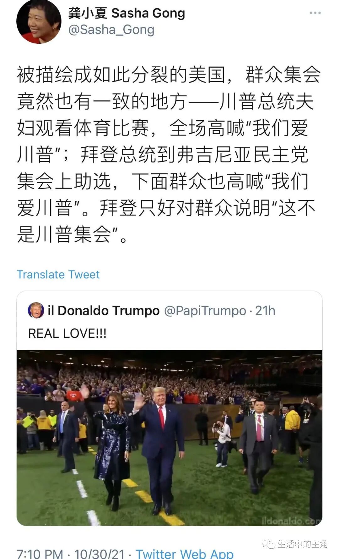 看见人们如此爱戴川普总统,左疯张口雌黄地攻击川普参加这场比赛挥舞的手势是发动文化战争、对印第安人的种族歧视,美国保守派年轻人领袖查理.柯克发这出上面这个推特:我们曾经有一位总统(川普)和我们一起打文化战争,而不是对我们发动文化战争!