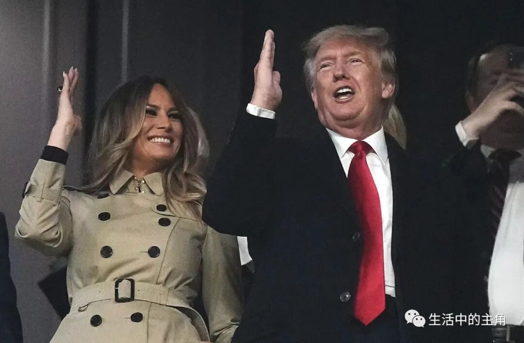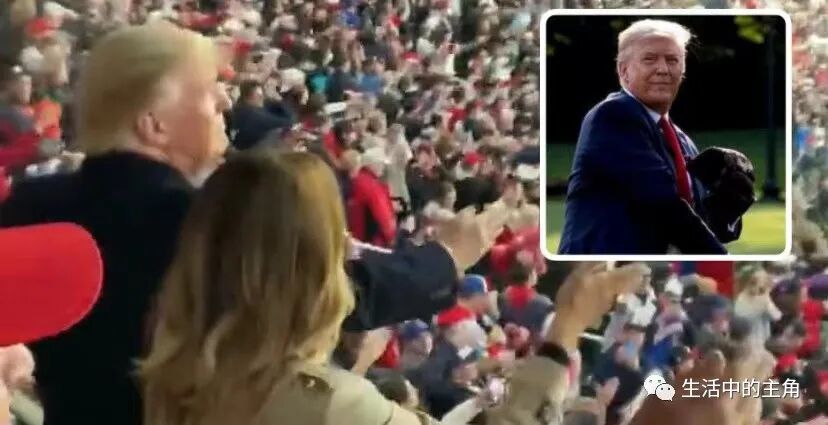 10月30日周六晚,川普总统和夫人梅拉尼娅出席在亚特兰大举行的世界系列大赛第四场比赛,与亚特兰大勇士队(Braves)的球迷一起进行战斧劈砍。这是“印第安人战斧”的手势,它代表胜利!勇敢!劈砍!也是勇士队的标志!