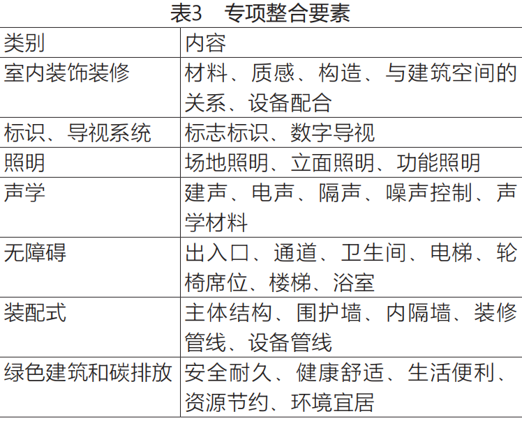 建筑各专项通常由多专业咨询和顾问工程师负责,从而在建筑设计中促进各领域的专项设计和技术进展整合(表3)。