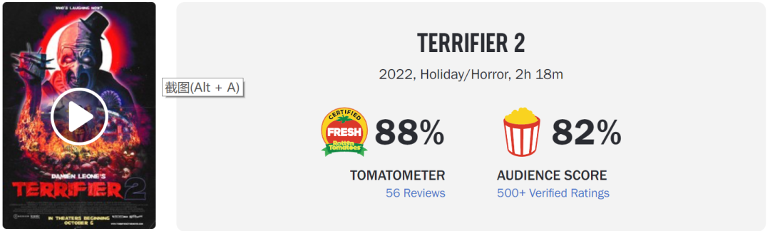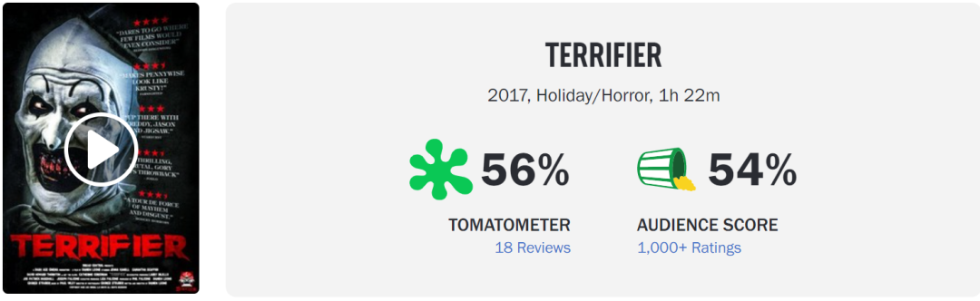 恐怖片《断魂小丑2》于10月6日北美上映,目前北美票房已经超过980万美元,很快就能突破1000万美元,制作成本仅25万美元,不愧是票房黑马。