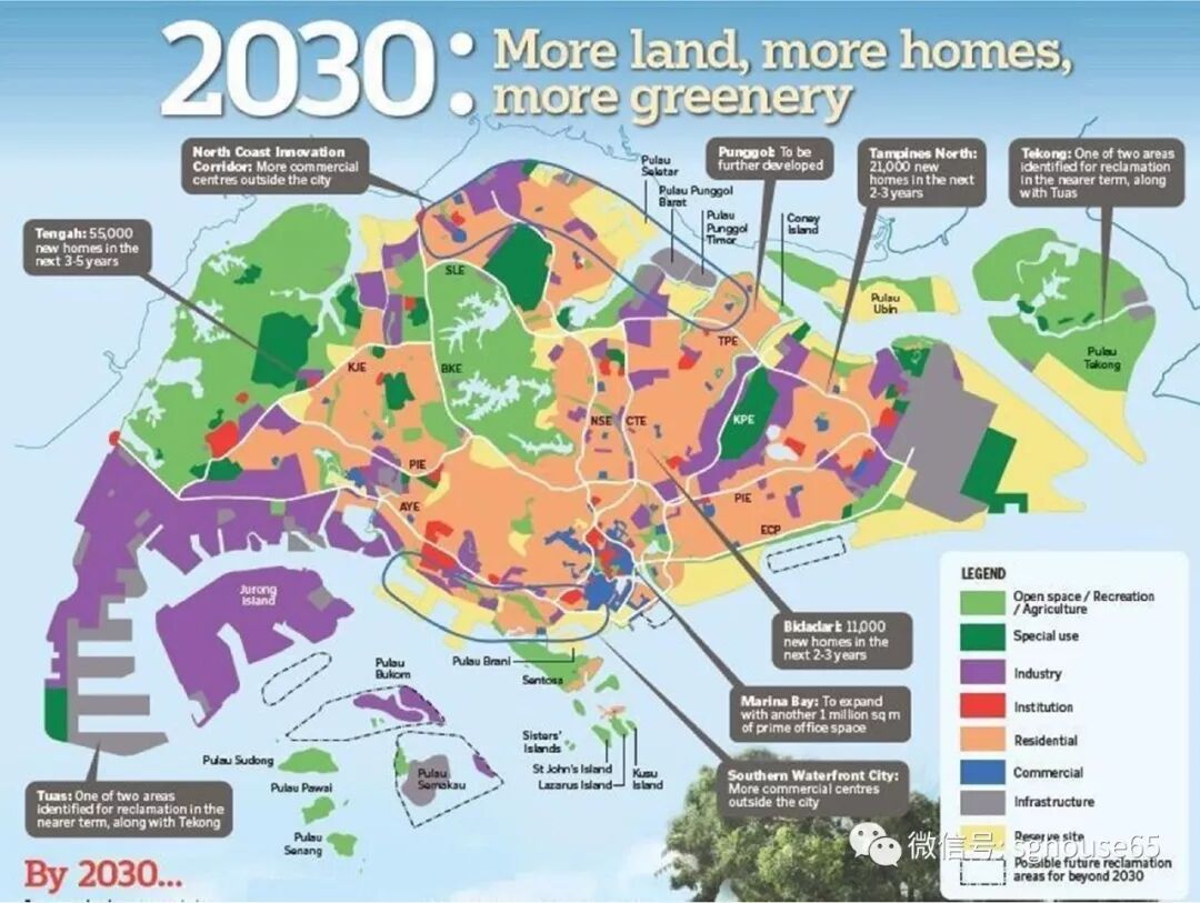 到2030年concept plan长期规划,除了人口规划,政府还规划了绿化,土地用途,建房数量等配套措施