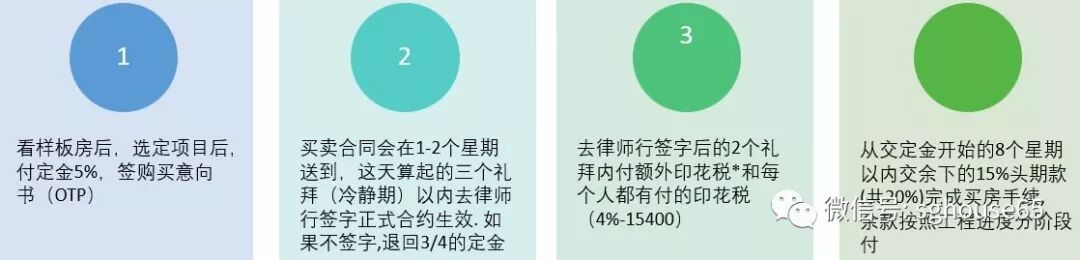 期房从订房到手续办完需要8个星期时间,付完头期款和税之后分阶段付款,详情如下: