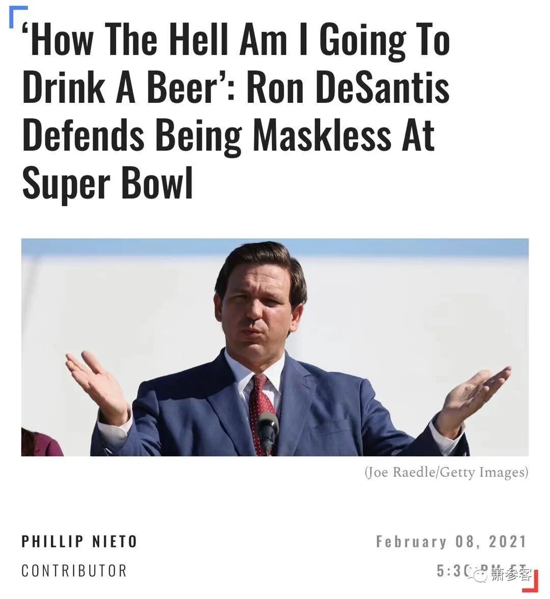 主媒对于上面的照片里德桑蒂斯违反疫情6英尺社交距离与不戴口罩的规则纷纷指责。