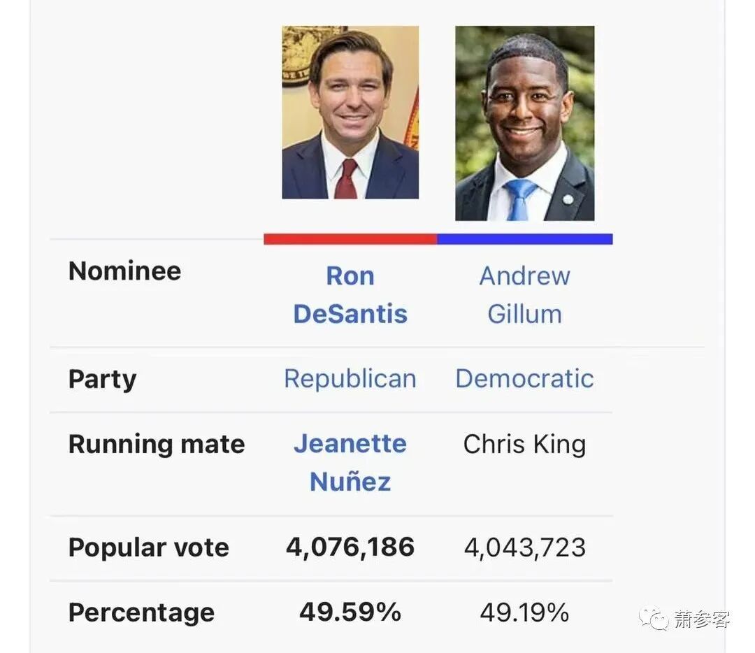 说起德桑蒂斯成为州长的事,不得不提到险象环生的2018年的中期州长选举,那是佛州爱国者们难以忘怀的不眠一周。因为德桑蒂斯是以微弱优势最后击败民主党候选人吉勒姆(Andrew Gillum)当选为新一任州长。