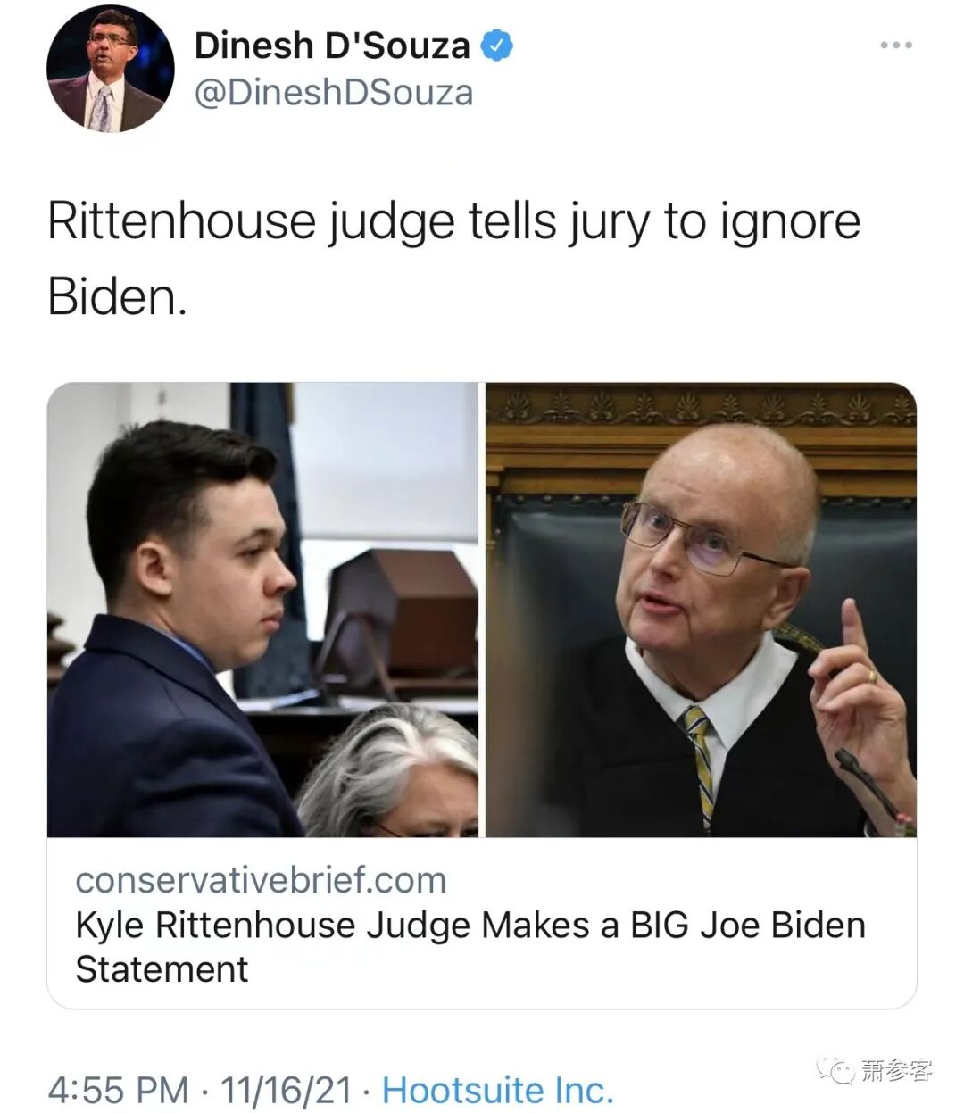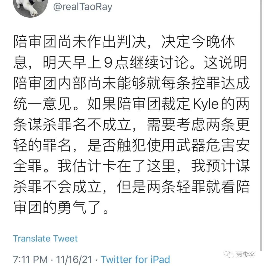 在11月15日周一听取了辩方和控方几个小时的结案陈词后,陪审团将于周二上午9点集合讨论。法官布鲁斯·施罗德(Bruce Schroeder)告诉陪审员:“你们不要理会任何人的意见,即使是美国的总统,或者在他之前的总统。” “我们国家的缔造者赋予了你们,也只有你们有权力和义务根据法庭上提供的证据来裁决这个案件。”