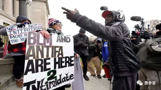 11月16日周二一早,支持将凯尔治罪的 “黑命贵” 和 “安提法” 成员开始在基诺沙郡法院门前聚集,并用扩音器向法院内的陪审团喊话:“没有公正就没有和平。” 试图以暴乱威胁并影响陪审团的裁决。反对治罪的民众也在聚集,二警察则在不远处观望。