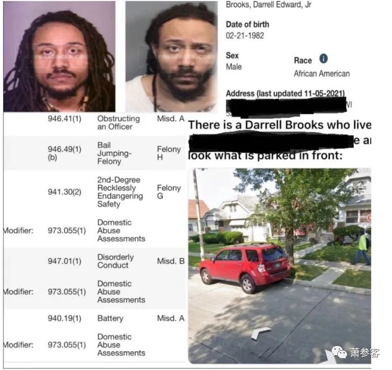 《纽约邮报》记者卡罗尔·马科维奇(Karol Markowicz)发推称,犯罪嫌疑人是有案在身假释候审30多岁的非裔沃基沙居民达瑞尔·E·布鲁克斯(Darrell E. Brooks)