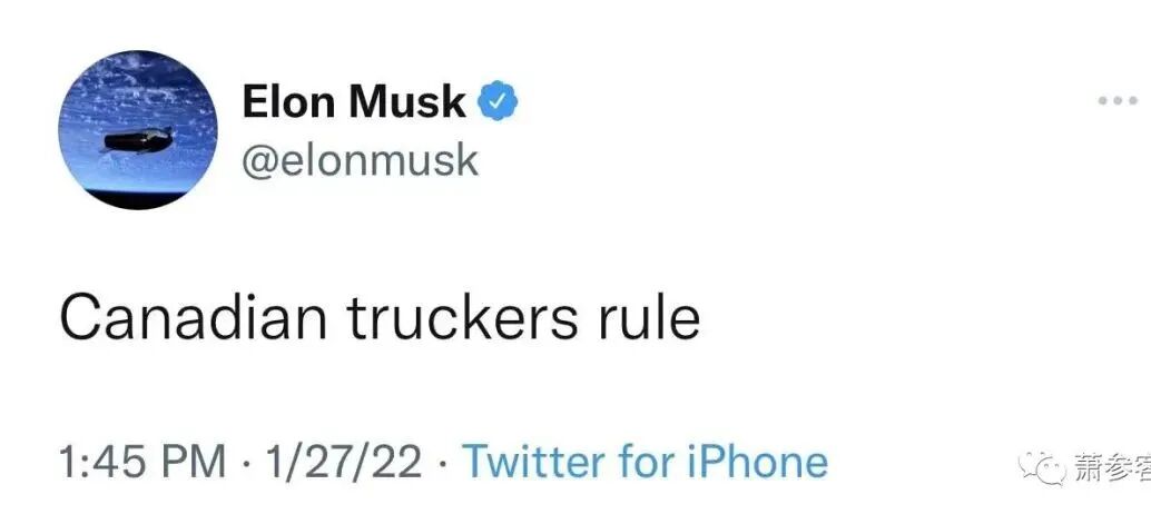 随后下午1:45pm,当得知加拿大卡车司机抗议对跨境司机注射疫苗盖章的强制令规定,马斯克直接在推特上点名喊话:"加拿大卡车司机太牛了"。