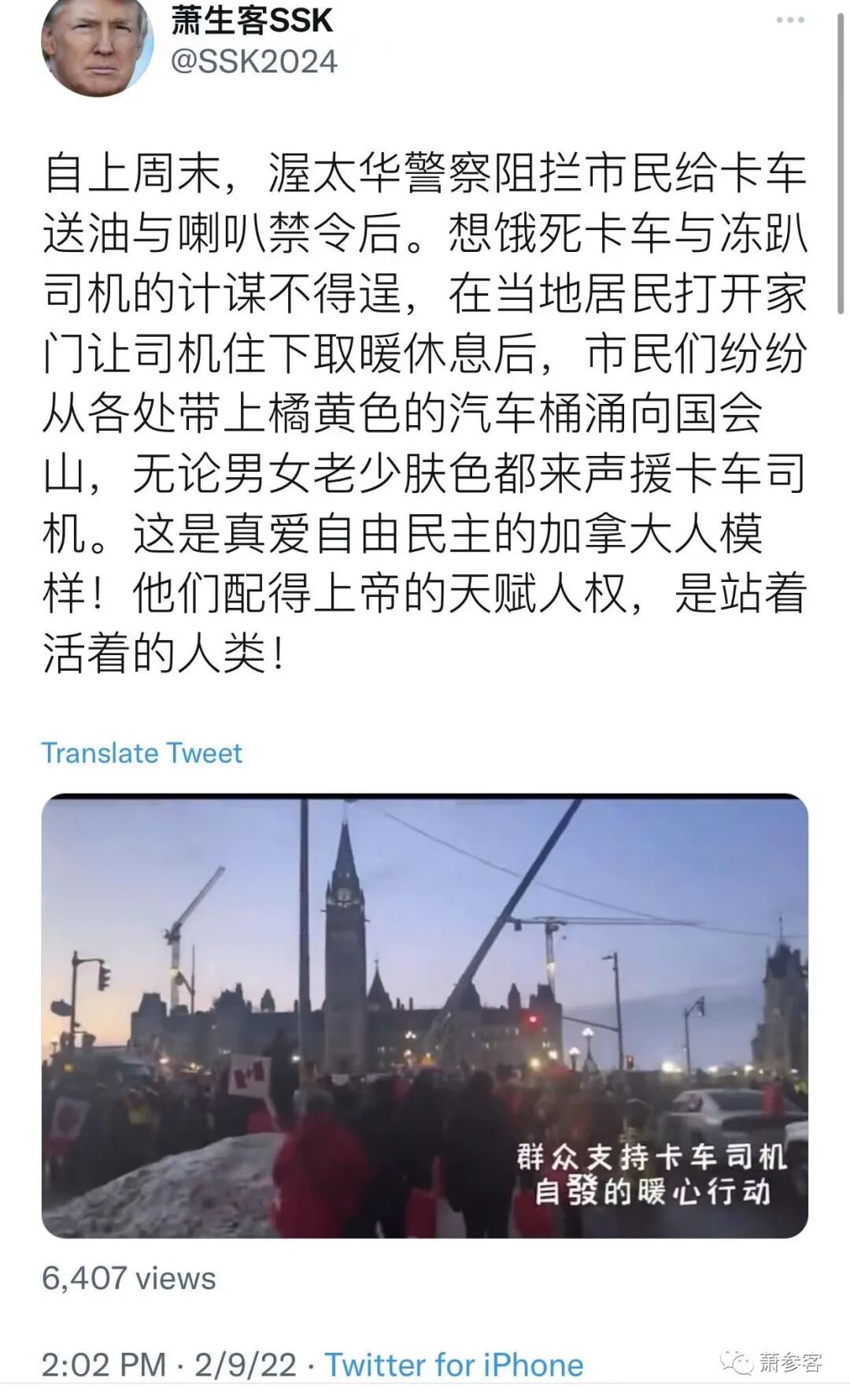 最新动向:加拿大卡车司机抗议领袖Pat King今天晚上(2月9日)8pm左右发布的直播视频(有英文字幕。中文字幕仅供参考,时间匆忙未校)