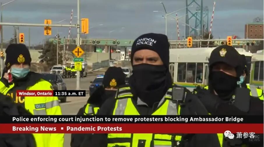周六上午,在连接密歇根州底特律市和安大略省温莎市的大使桥,数十名警察对正在进行的卡车司机抗议采取行动,似乎是在执行安大略省州长道格·福特(Doug Ford)发出的清除示威的威胁。