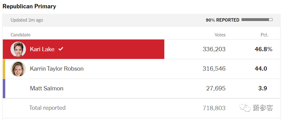 雷克现在将在11月的中期选举中与赢得民主党初选的州务卿凯蒂·霍布斯对决。