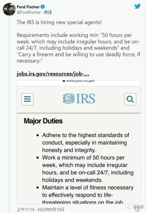 原文链接:https://www.foxbusiness.com/politics/irs-faces-online-uproar-special-agent-job-posting-requiring-ability-use-deadly-force-necessary