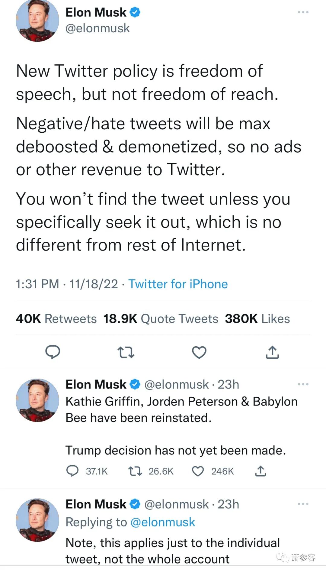 但是,不到40个小时的光景,又决定公开宣布回推特了!