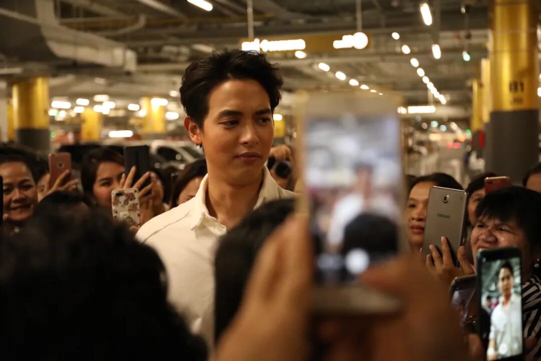 不用花太多钱就能获得和偶像亲密接触的机会,有时候甚至是for free,真有这样的好事?在这个问题上,4位泰娱女孩与我分享了不同的体验。首先是nini,因为有追星的朋友,所以她在泰国期间也参加了各种各样的线下追星活动。演员Bilkin和PPKritt参加的一次站台活动。/受访者提供。