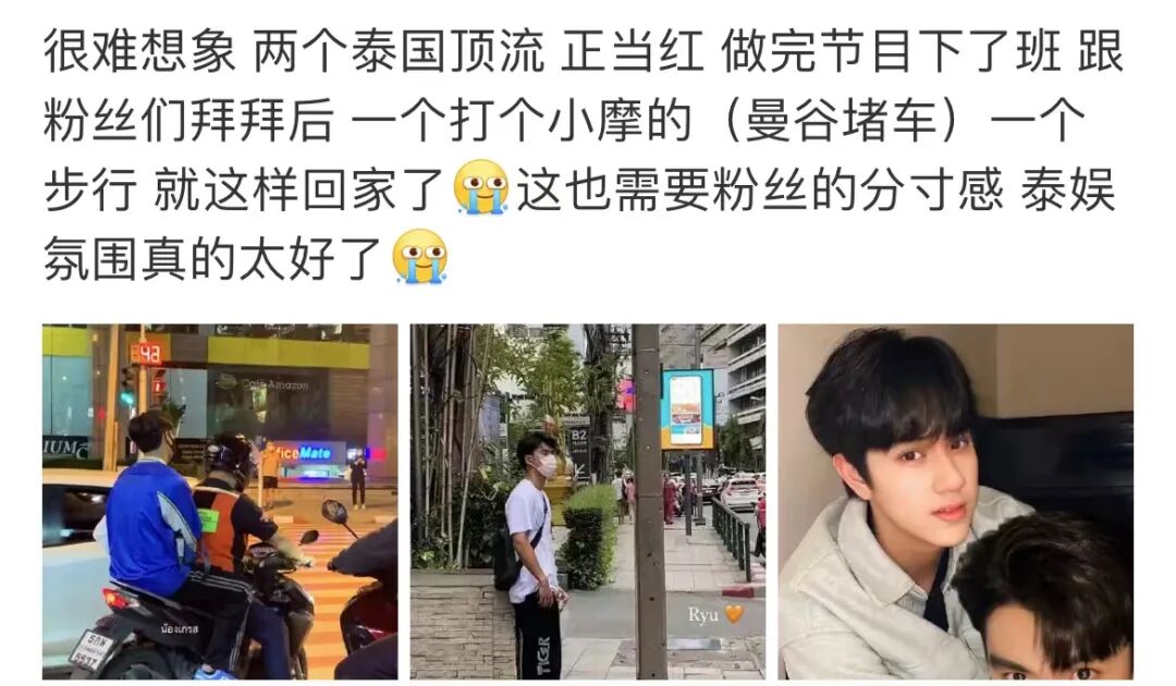 在长期和泰国人相处后,林同学和她的朋友们将泰国人的礼仪高度概括为“一种带有日式腔调的交际路数”。一方面,受本土佛教思想的影响,泰国人本就很注重长幼尊卑;另一方面,日本礼仪文化多年来在泰国广泛传播,让很多泰国人受到了潜移默化的影响,使他们更加在意社交中的礼仪。林同学举了一个小例子,在公众场合下需要擦身而过时,泰国人不会直接与你直面相迎,他一定会弯腰,然后侧身给你一个表示礼貌的避让。这一点在同为泰国归来的nini口中也得到了证实,她表示有些礼仪直到现在还影响着自己,比如过马路时,会对停下礼让自己的车弯腰致谢,等等。这些礼仪思想深深根植于泰国文化中,也同样影响了泰国娱乐圈和追星文化。“我们通常将泰国的追星女孩们称为‘泰妃’,她们真的会让人感觉很有礼貌!追星现场一般也秩序井然。泰国明星们普遍也表现得非常温和有礼。”几位受访的女孩几乎都表示,泰娱环境与他们的思想文化紧密相关,这给了大家很和谐的追星体验。![]()