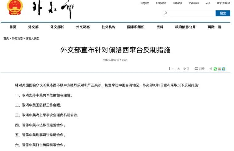 答:台海紧张局势的来龙去脉一清二楚,是非曲直一目了然。佩洛西不顾中方强烈反对和严正交涉窜访台湾,严重违背一个中国原则,恶意侵犯中国主权和领土完整,严重践踏国际关系基本准则,激起中国人民强烈愤慨,引发国际社会普遍反对。中方就此采取的反制措施是对国家主权和领土完整的正当捍卫,是对地区和平稳定以及国际法和国际关系基本准则的坚决维护,是正当的、必要的、恰当的,毫不过度。