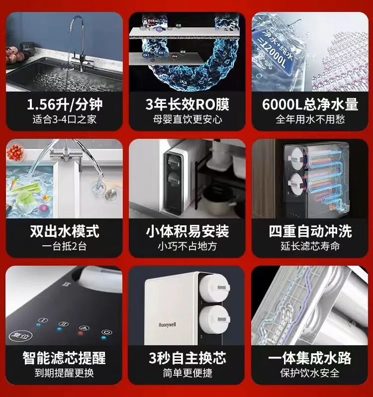 6吨/小时大通量,大别墅用水也能供得上~母婴级滤瓶、防爆外壳,妥妥的放心级!!能健康的喝水太重要了,首选反渗透净水,除了H2O什么也没有,放心直饮。