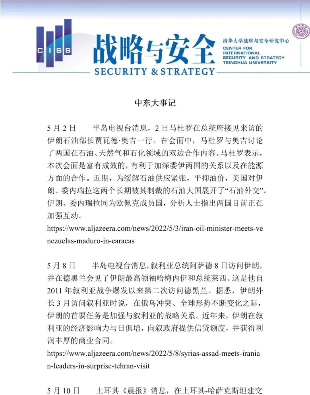 【CISS战略与安全大事记】中东篇-5月