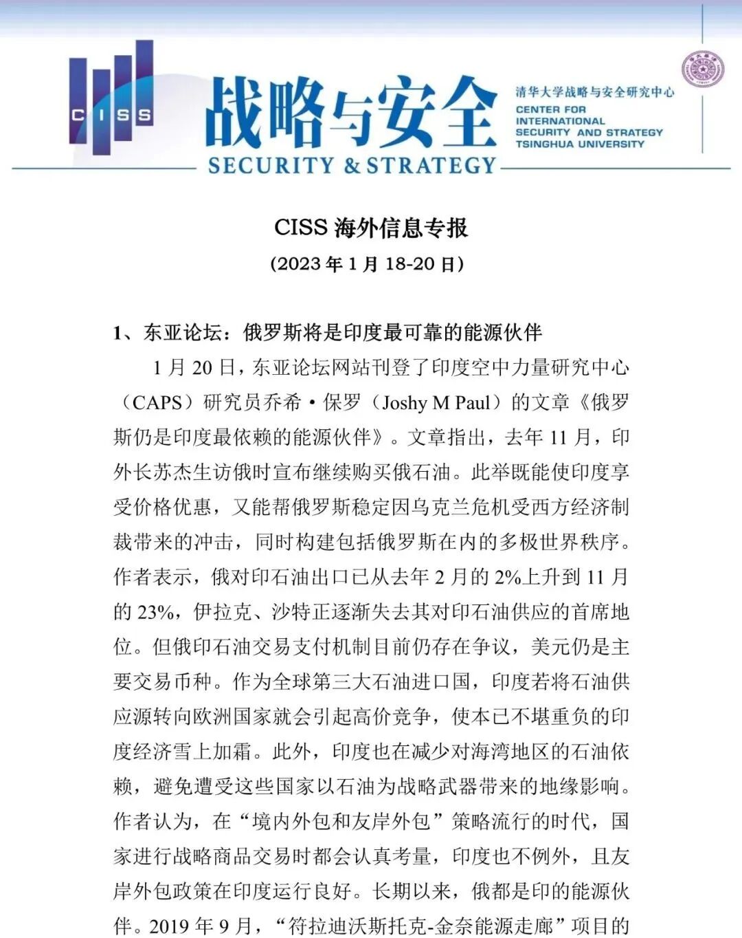 国际战略与安全研究动态 | 总第392期—CISS海外信息专报(2021年6月30日)