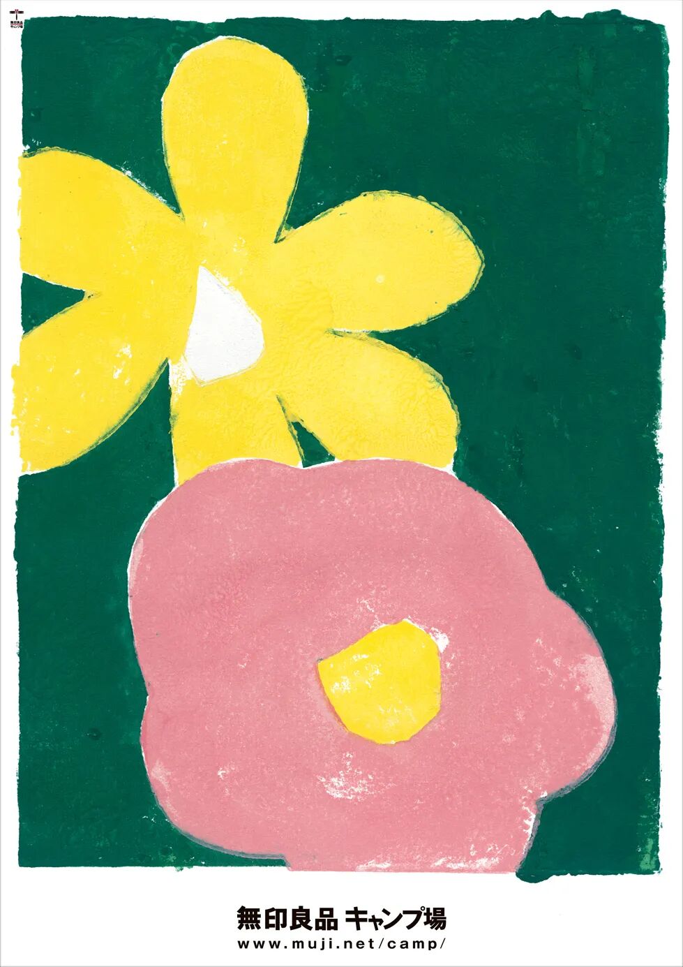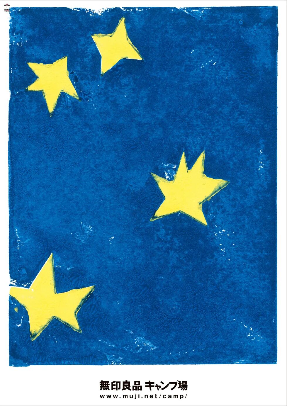 这组海报(2010)展示的是露营地的植物、昆虫和云。仔细观察你会发现图案的印刷上会呈现出一种自然的斑驳,同时还有明显的拼接痕迹。我知道PS的斑驳笔刷也能实现类似的效果,但新村肯定不会这么做。他采用了一种日本人用来印制传统贺卡的“丝网印”小机器。