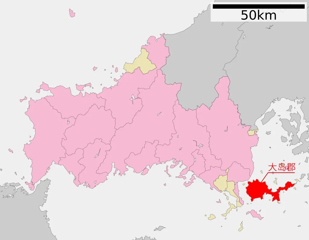 日本的“县”大致相当于中国的“省”,山口县位于日本本州最西端,三面环海形如半岛。