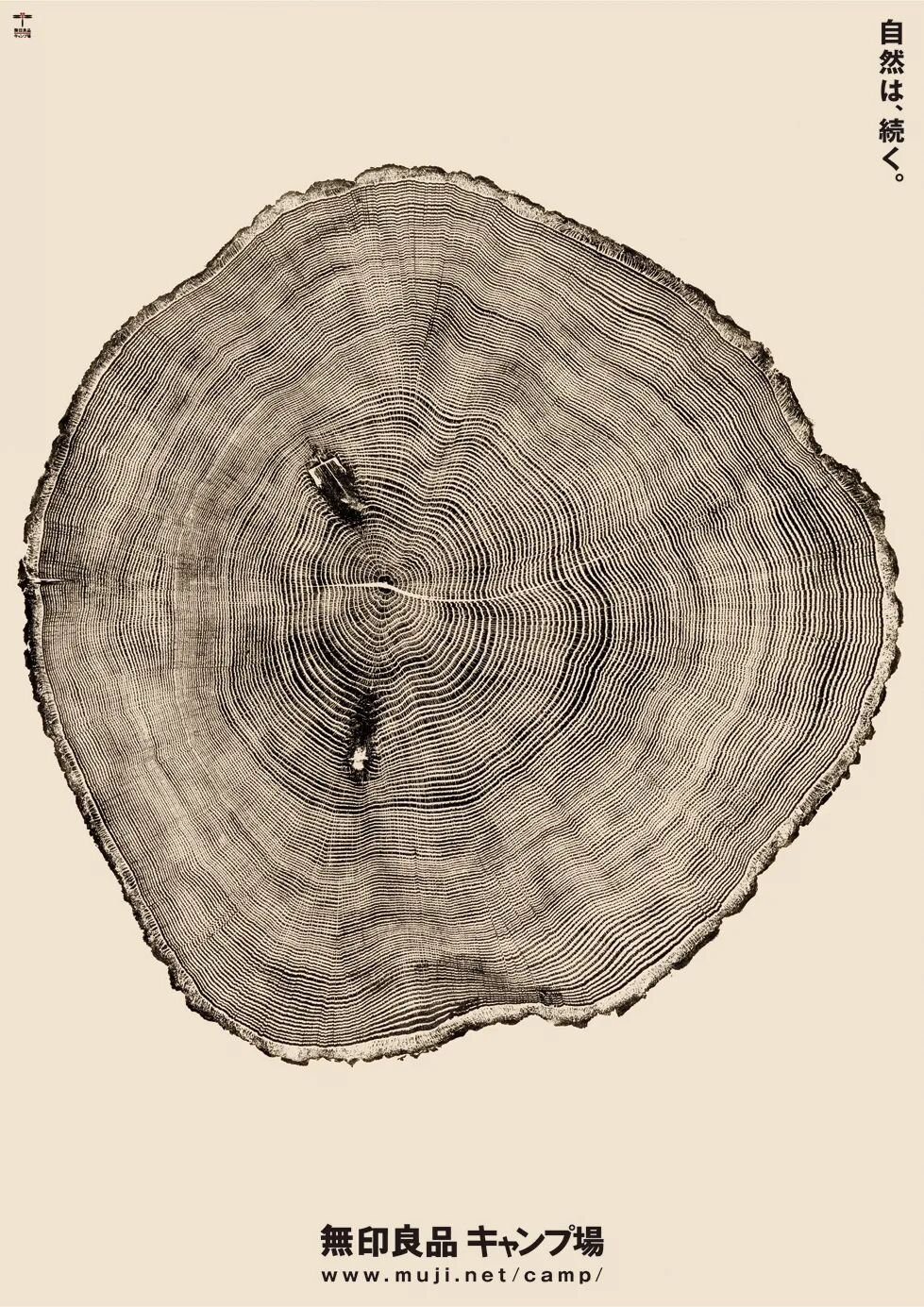 无印良品露营地在2017年迎来了20周年。新村则人就这样一年一年地关注着自然也注视着无印良品的成长。他决定用“年轮”的概念来表达这种自然的生长。图片中木材的截面是美国艺术家Bryan Nash Gill通过一种火烤的手法制作的,每一圈年轮都能呈现出丝丝分明的效果。