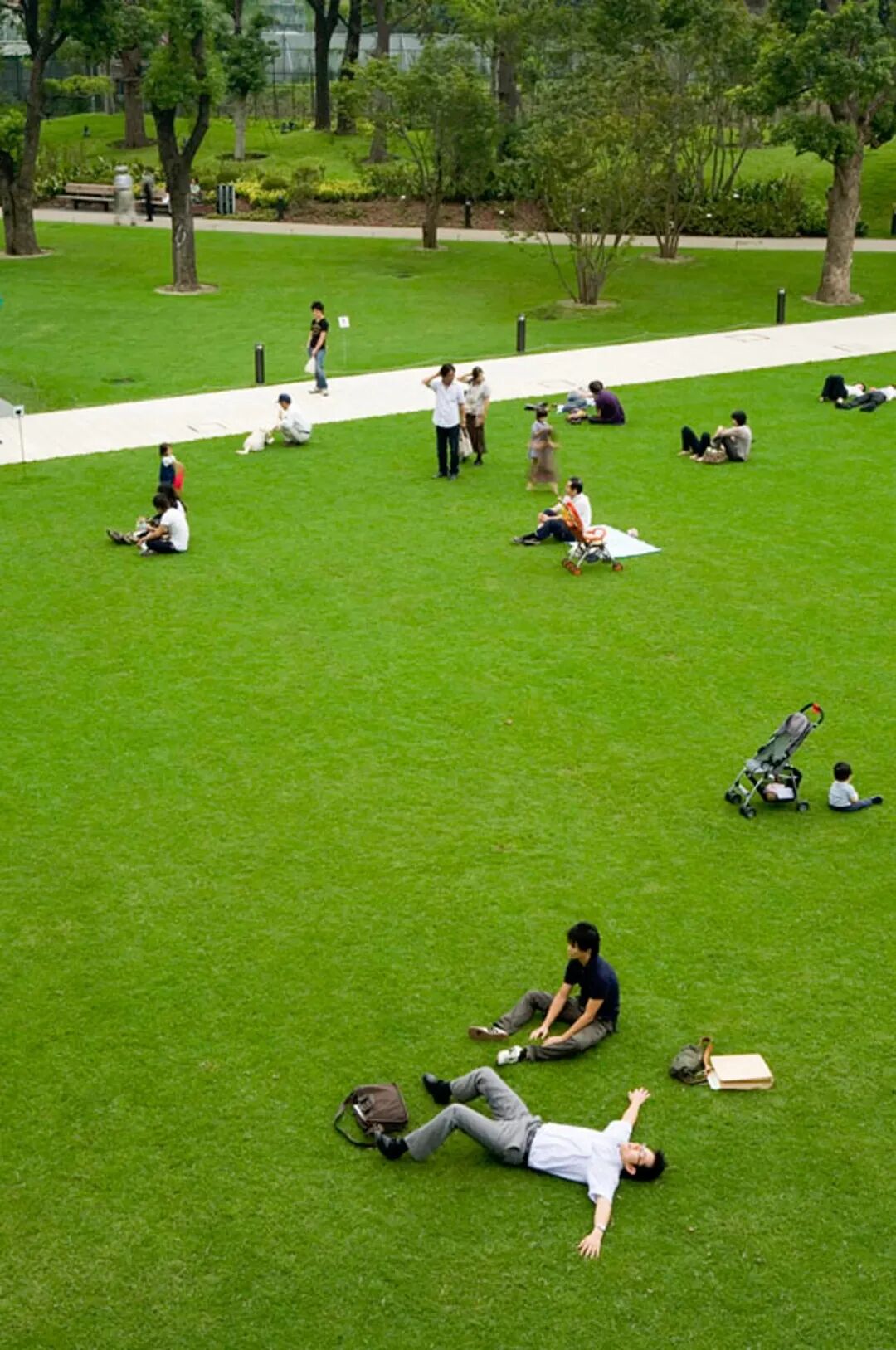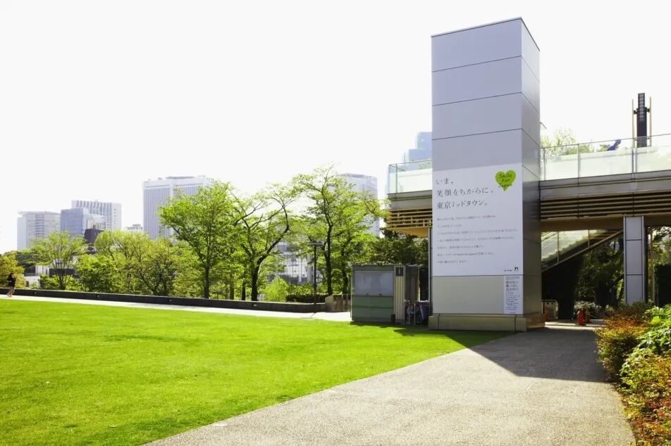 这样一想,中城预留了那么大的草地空间,就代表它非常注重人们这种心情和愿望。它的规划设计,是把建筑盖高,周围的空间开放出来,进而加大了绿化规模,最后还大幅超过了法律规定的规模,它让人们奔跑、休息、工作和居住,推出了一种新的都市空间形态与生活方式。也就是说,这一片广大的草坪和草地,是东京中城强烈展现出来的“特质”。