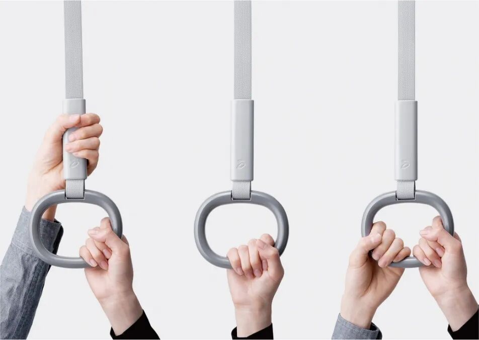 所以它设计拉环的同时,还在上方设计了可供抓握的地方。以适应更大范围的身高的人群使用。画面中给我们展示了它的三种不同情况的用法。我想,连地铁拉手都重新设计得如此用心,对待品牌的细节可谓是认真到底了。