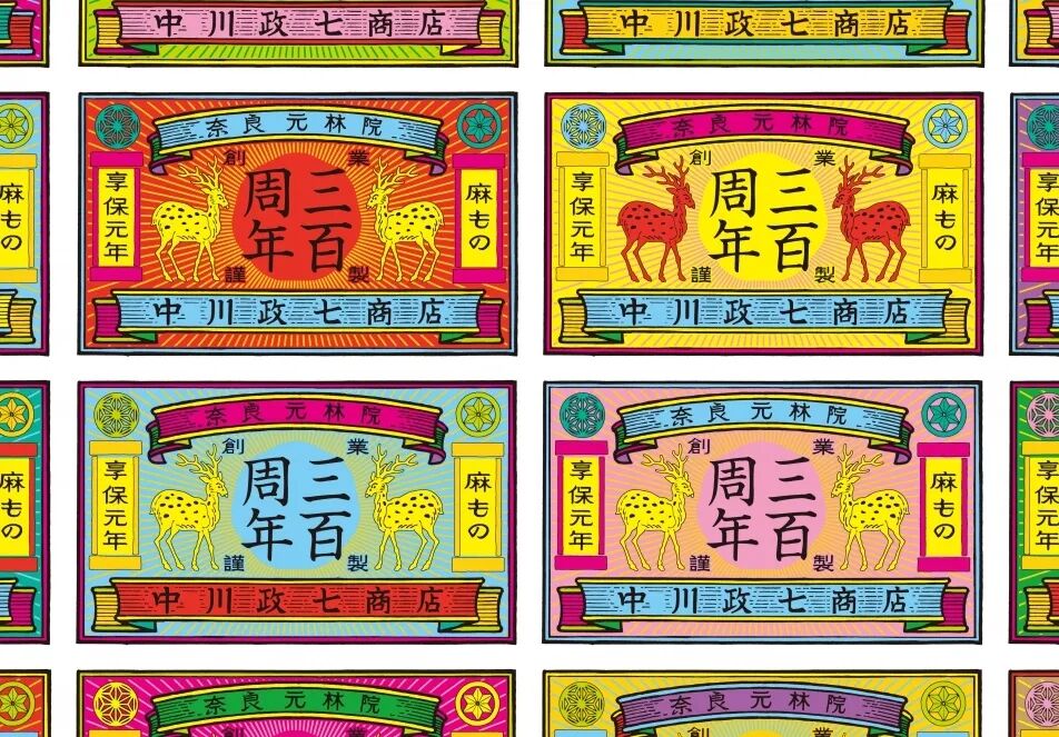 品牌重复使用极具奈良特色的“鹿”主题,包括在300周年的海报也采用手工印刷,历史感和现代感并存。