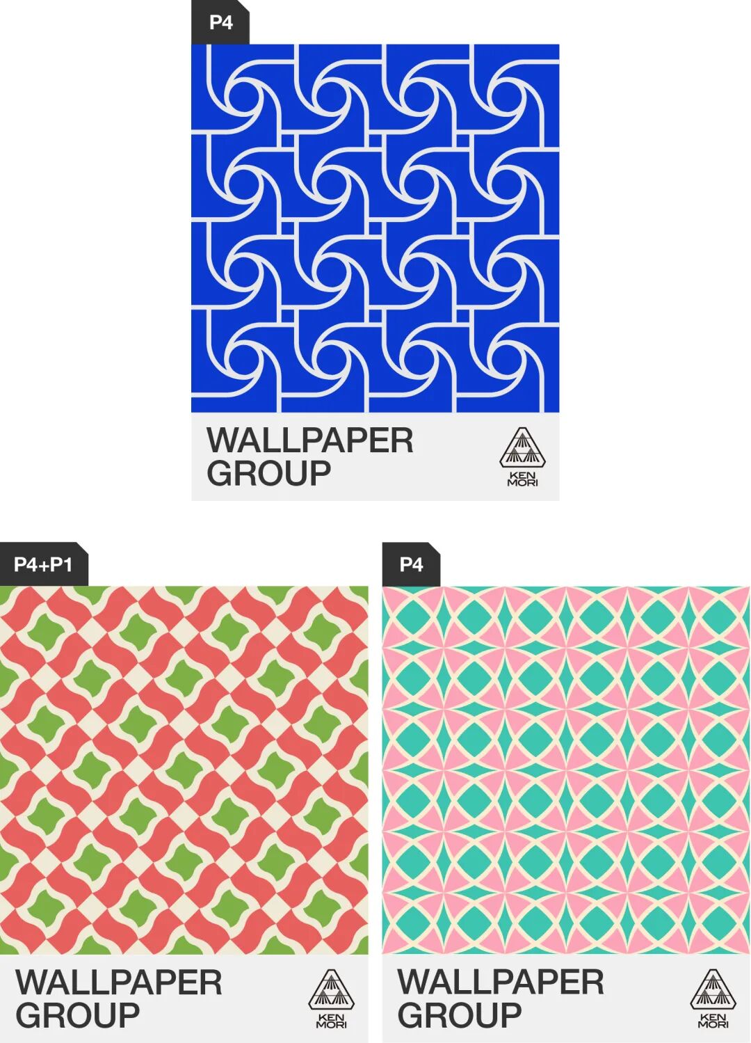 我们总结一下,P4是以正方形格子为基础,加上90度旋转四次设计而成的图案,比较简单的单元形经过P4的设计也可以设计出比较丰满的画面,使用P4设计图案,也可以给人精致和有趣的视觉感受。