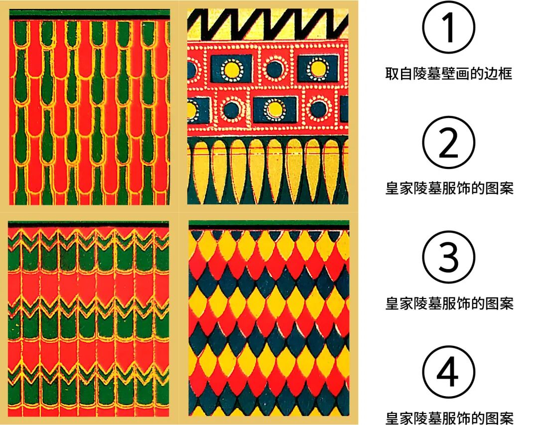 古埃及人将身边随处可见的元素进行抽象的设计,重复编排,就形成了古埃及艺术装饰中的一幅幅经典纹样。