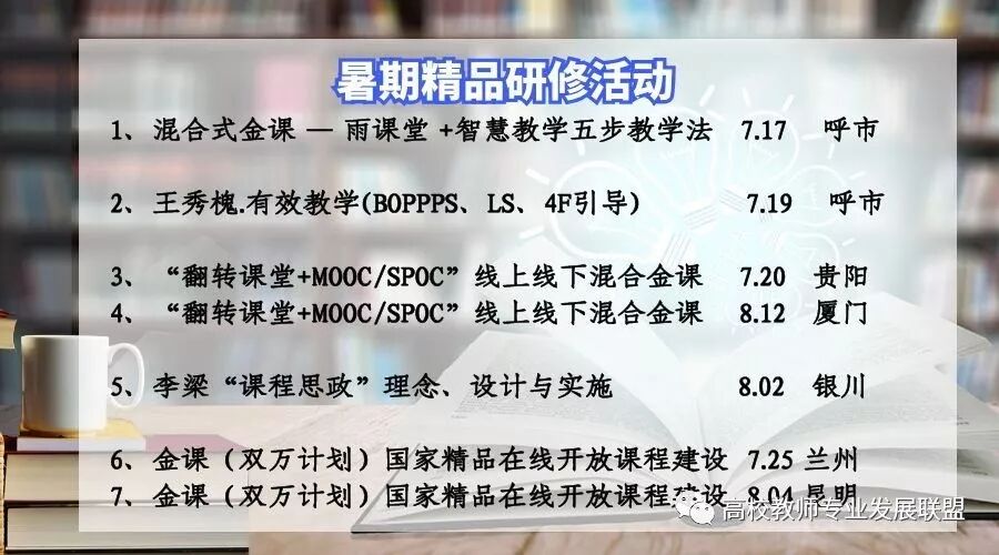 为贯彻《教育部关于加强高等学校在线开放课程建设应用与管理的意见》(教高【2015】3号)文件精神,到2020年,我国将认定一万门线上线下的国家级精品课程及一万门线上线下的省级精品课程。为全面落实精品在线课程的建设认定工作,切实完成各省市教育厅、教委关于推进在线课程建设及应用的工作任务,推进各高校开展精品在线开放课程的建设及混合式教学改革与实践,进一步推进我国互联网+高等教育事业发展,提高高校教育工作者对在线教育教学的认识,提升其信息技术和新媒体技术运用能力,积极开展线上线下相融合的教育教学改革实践,特举办“高校金课建设——雨课堂+智慧教学五步教学法构建混合式金课专题研修班”