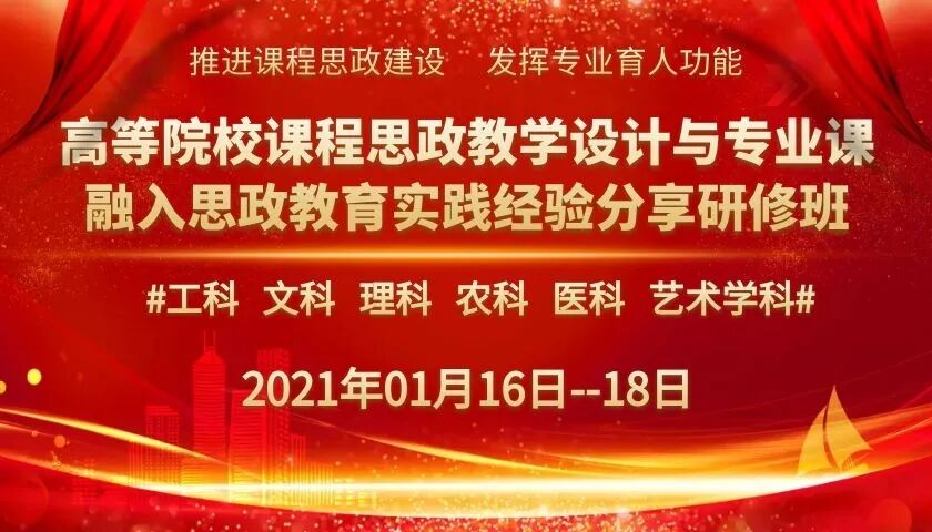 随着课程思政育人理念在各高校中的不断推进,专业课教师已然成为课程思政育人的中坚力量,因此,加强专业课教师思政能力的建设显得尤为重要,为进一步帮助高校教师正确理解课程思政的理念以及价值,提高各学科教师对“课程思政”的认识,挖掘各门课程的思想政治教育功能。由北京华思培教育科技院于2021年01月16日--18日再次举办《高等院校课程思政教学设计与专业课融入思政教育实践经验分享研修班》现将具体内容通知如下: