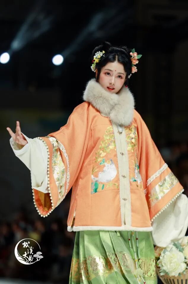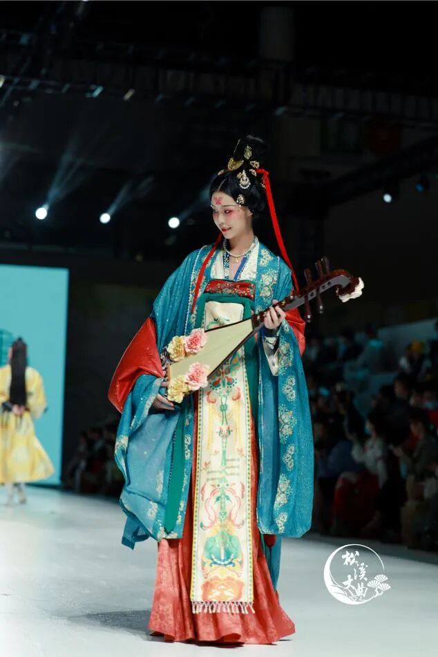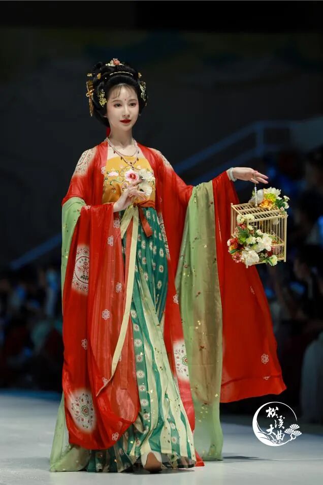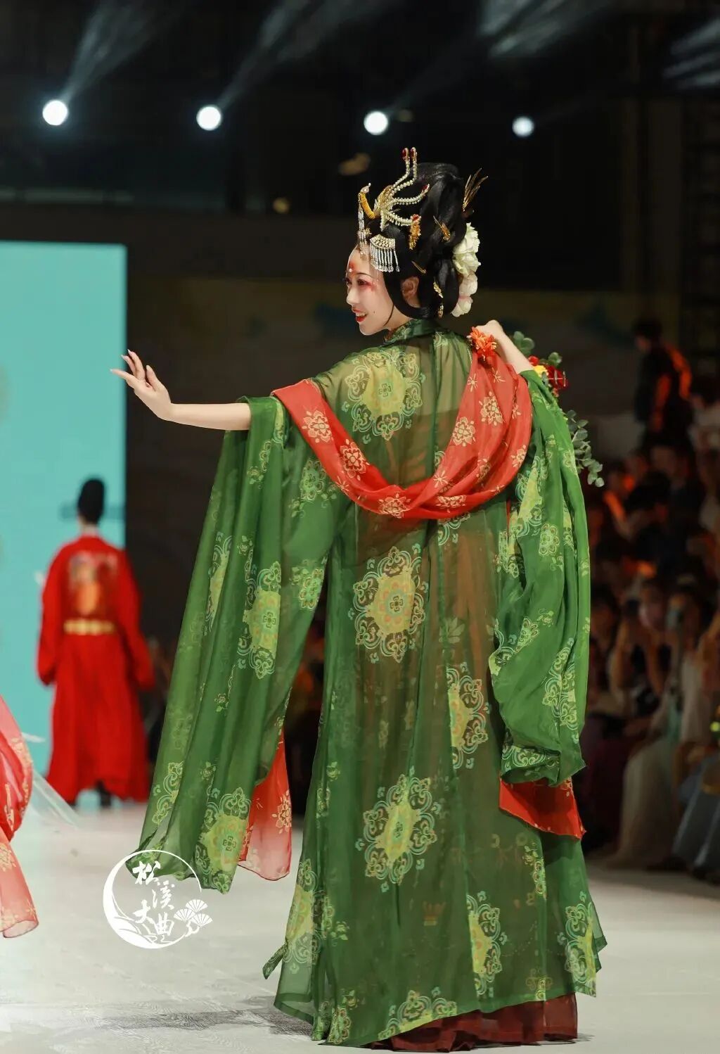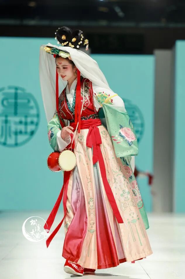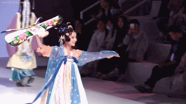 唐制衫裙和纸鸢有一种情景再现的感觉,唐朝的豆蔻少女在春日里放纸鸢!日站君大胆猜测,跑这么快,可能还是留给商家走秀的时间太紧吧!