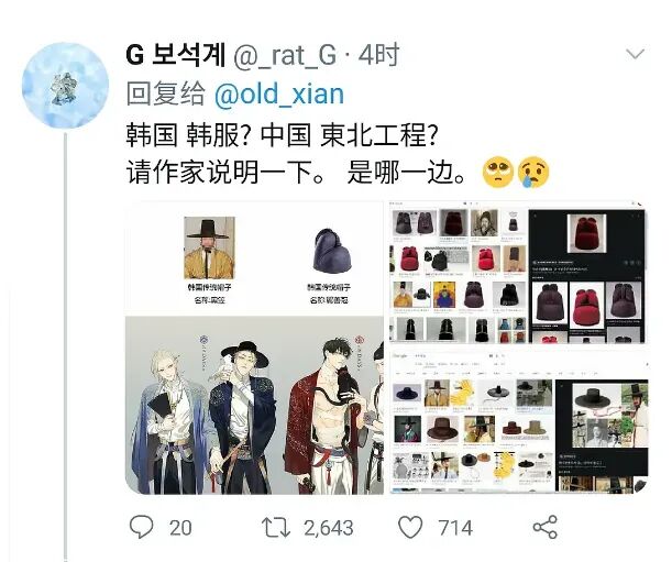 这里面还有网友怕看不懂,直接用英语、自动翻译的汉语输出,但是日站君不解了,为啥放的都是清朝图片?韩国网友是以为中国上下5000年只有清朝吗?后来old先发了一条推文表示,漫画的灵感来源是中国的汉服走秀照片、史料图片,和《绣春刀》、《龙门飞甲》的电影剧照!可惜有人有理有据,就有人胡搅蛮缠。