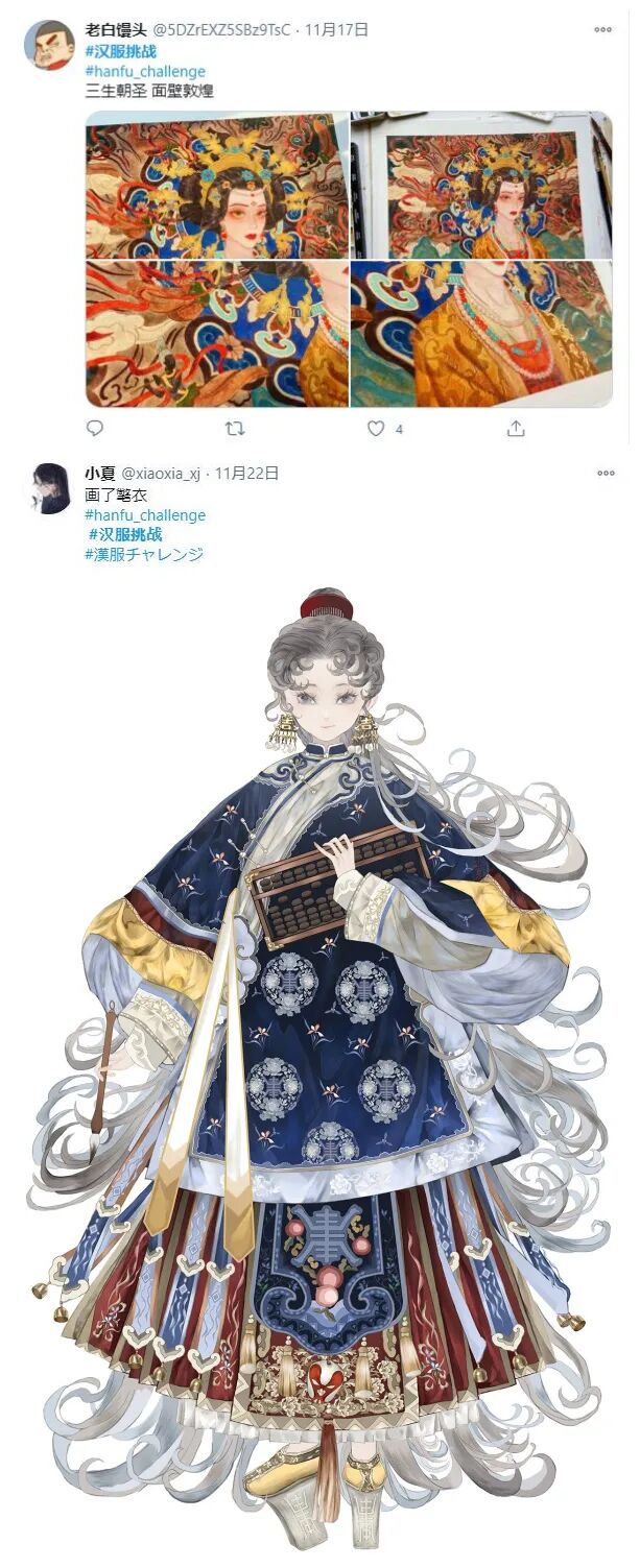 上面三件事发生的时间过于紧凑,再加上一次次的争论都败在史料证据之下,眼见着自己不占理了,韩国网友在外网上搞了一个#韩服挑战#的话题,从服饰到手绘,变着法的晒。