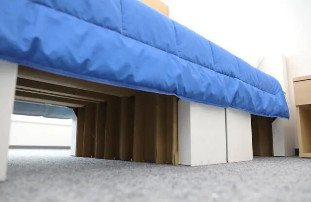 另一个让人摸不着头脑的操作,给运动员睡纸板床。