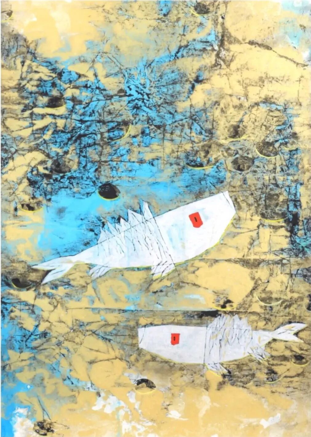 ▸王传峰作品:《古鱼》86cmx72cm 安徽宣 1991年