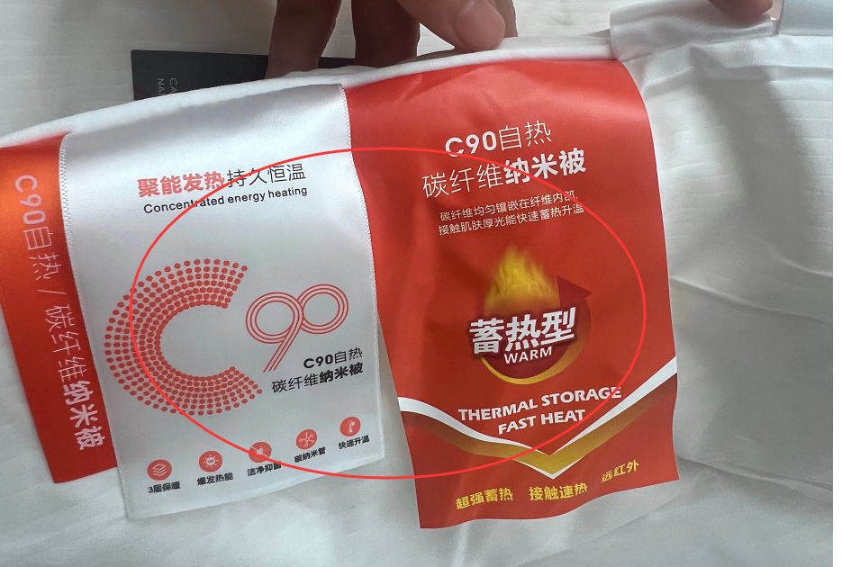 还有很吸引的一点就是,它里面添加了黑科技纤维,就是这个C90自热碳纤维纳米技术。
