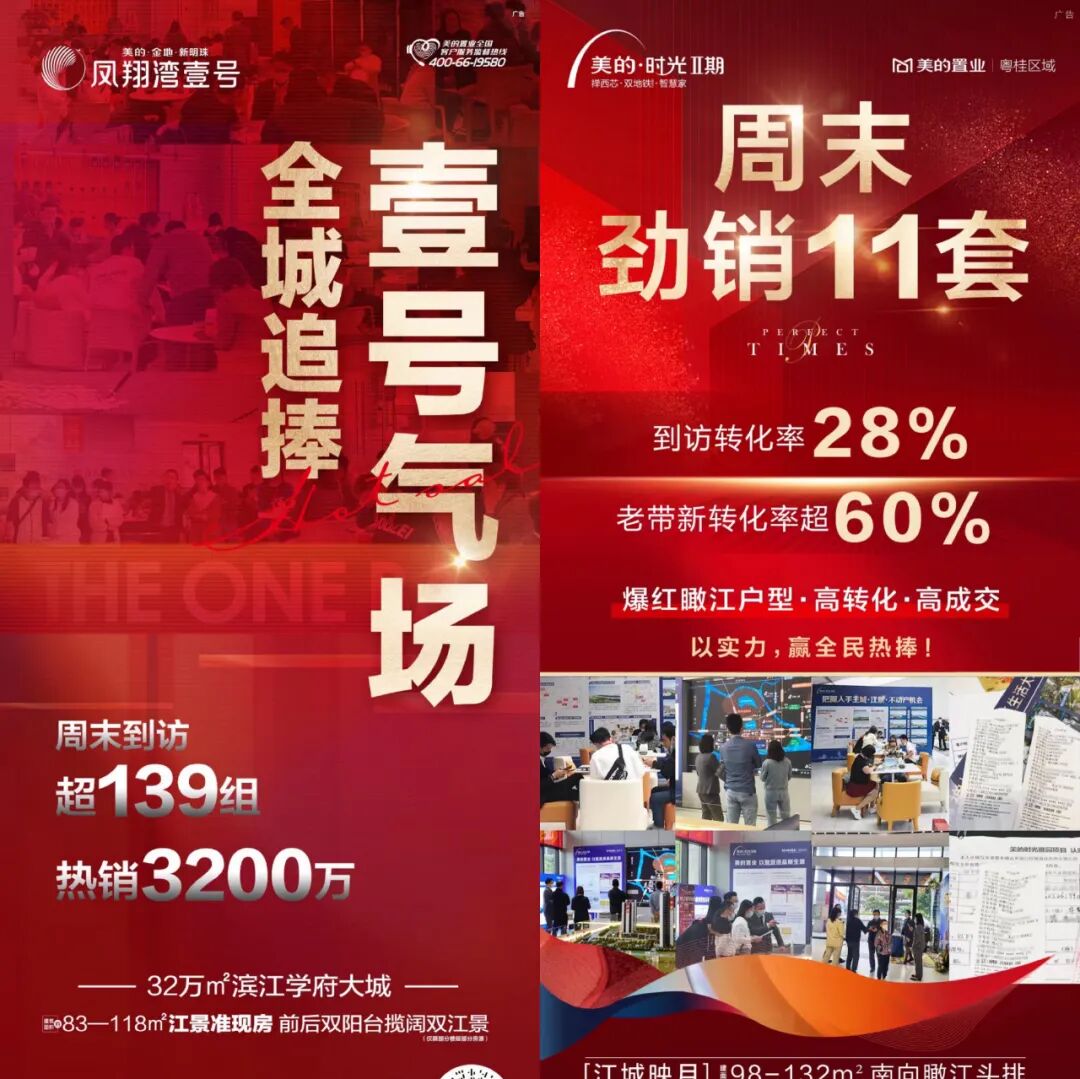 上周末成交也很不错,凤翔湾壹号周末到访139组,出货3200万,美的时光二期两天卖了11套。