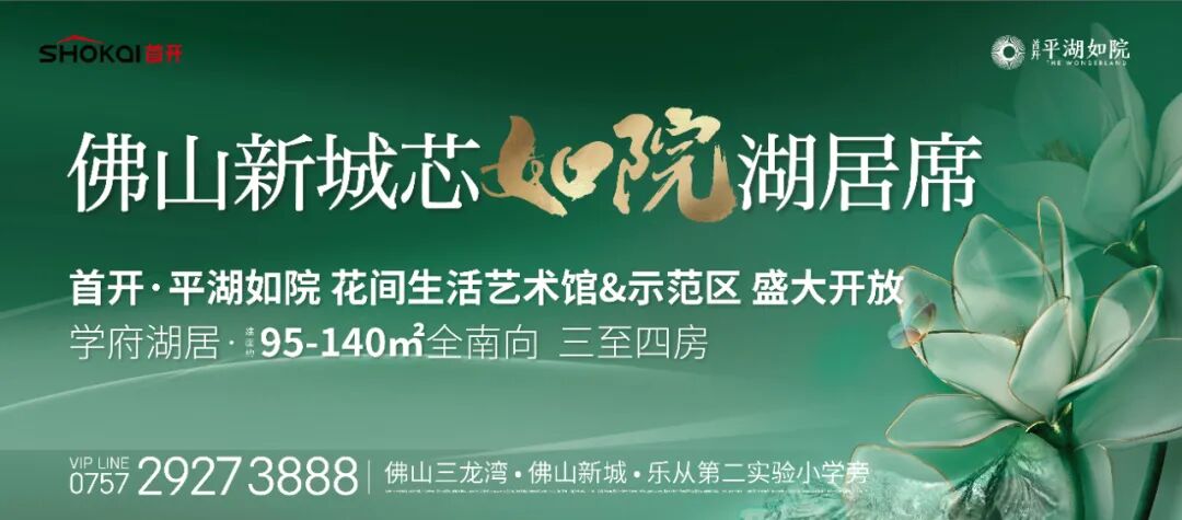 首开·平湖如院对营销中心的颠覆,本质上是对未来生活方式的呈现。作为首开地产首入佛山之作,开发商在项目规划和产品上更是谨慎。不难发现,无论是园林故事线、产品建筑规划、还是户型设计,开发商都注入了更多的思考,将传统、现代与实用性完美串联,还原了岭南生活原本的精髓。整个项目占地约8.3万平,容积率仅2.5,保留近5.4万平园林面积,相当于7个国际足球场那么大。足够大的面积和低密度,也让园林规划有了更大的发挥空间。据了解,首开地产用了接近半年的时间,从佛山博物馆到大街小巷,去寻找属于这座城市的故事。最终,以“岭南彩窗”为灵感,把岭南文化化繁为简,重新糅合到结构、景观、装饰的每一个细节中。项目特邀享誉国内外的豪宅景观设计公司山水比德,造出了佛山首个现代岭南风格园林,巧妙布局了“两轴九景十四间”生活空间。站在精心雕琢的社区之中,将每个功能区进行了最为合理的划分。无论是归家的礼仪秩序、功能庭院、还是【十四间】泛会所,都可以满足未来业主养生、运动、度假、嬉戏、聚会、运动、交流的需求,一览岭南原本的生活。![]()