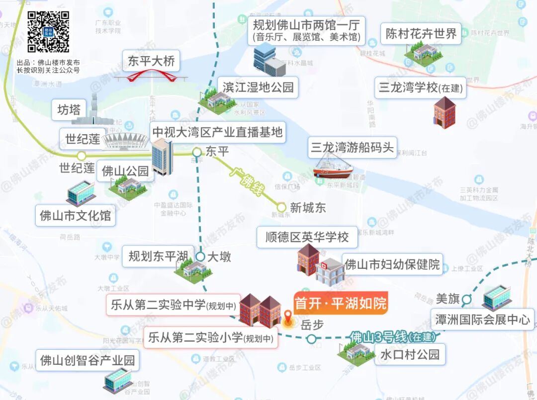 一方面,作为首入佛山之作,首开地产非核心地段不入。重重探索之下,最终择址佛山新城。经过接近20年的重磅打造,这里已落成全市最顶级的“九馆六心”千亿市政配套,汇聚了政府最优质的资源倾斜。首开·平湖如院紧邻规划中的细海河公园、东平湖、南北大动脉3号线(在建)岳步站,恰是佛山新城南拓的重要标志。在佛山新城产业不断发展,人口迅速成长的大前提下,南拓势在必行。无论是今年4月发布的细海河公园控规修编竞争性磋商公告,还是东平湖规划,这里毫无疑问将发展成为生态醇住区,承载着高端人群对居住、生态的高标准需求。对比于已接近饱和的佛山新城核心区和会展片区,佛山新城生态醇住区不仅具备宜居性,也更有想象空间。另一方面,首开·平湖如院西侧,就是整个佛山新城都在期待的乐从第二实验小学和乐从第二实验中学公办学校。根据规划,两所学校预计2024年开学,计划由知名校长负责筹建工作,打造成第二批品牌公办学校。今年4月,两所学校便陆续发布工程批前公示,相信不久后就有望迎来动工消息。除此外,800米范围内,还坐落着教育资源雄厚的英华学校,今年9月正式招生。佛山新城备受关注的教育资源问题,将迎来全面升级。乐从第二实验小学、中学招标信息 来源:佛山市公共资源交易网