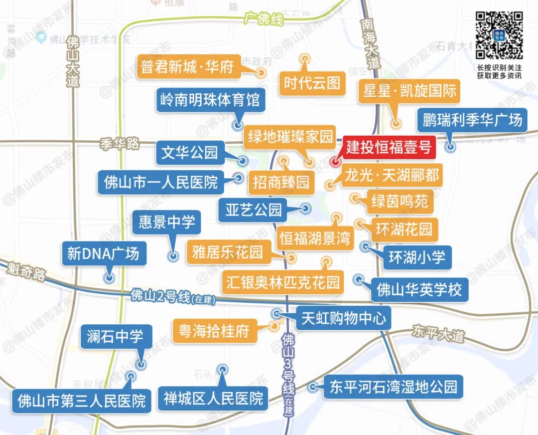 建投恒福壹号位于禅城湖景路与季华路交汇,去年2月由佛山建投联手恒福集团,通过三旧改造协议出让获得,出让价款超9.8亿元。