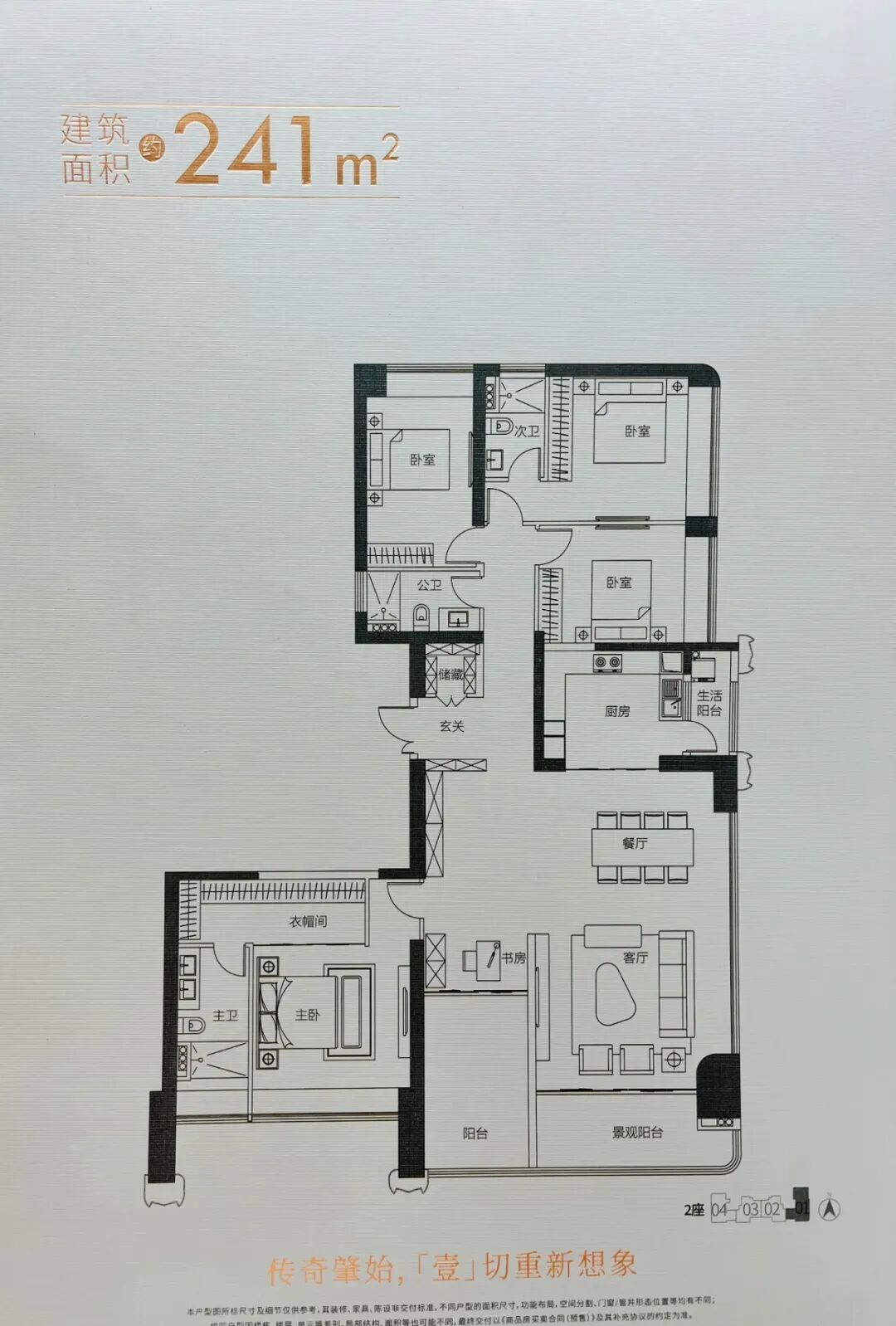 建面241平的四房,是首推面积最大的户型,位于2座01单元。