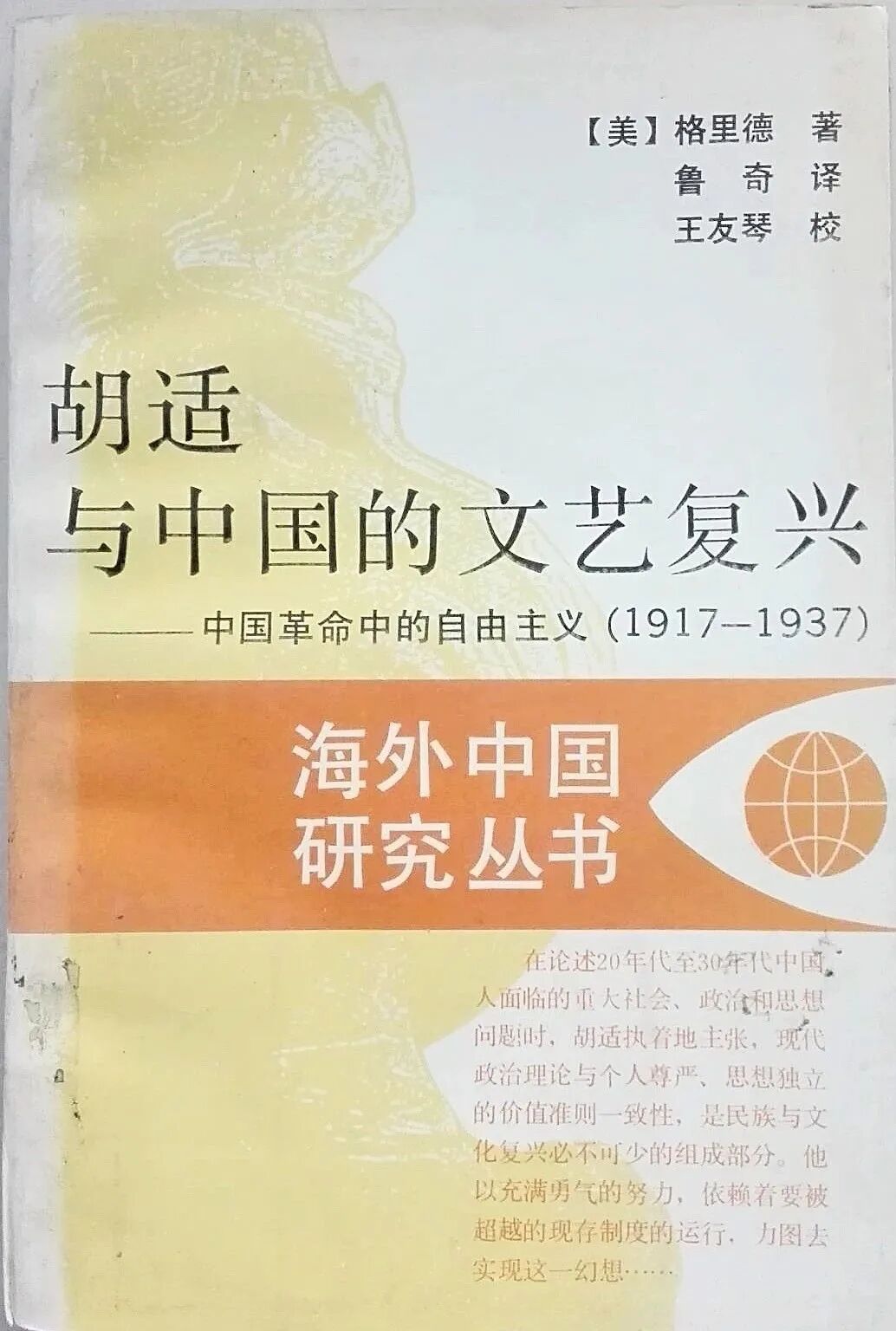 【美】格里德:《胡适与中国的文艺复兴》中文版第一版,江苏人民出版社