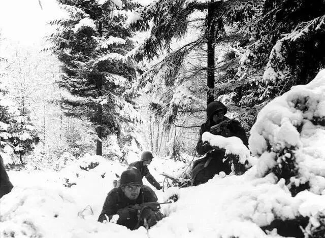 这是二战中最为血腥的一场战役。双方在这场亦被称为阿登战役的一役中共投入兵力近百万;战争在暴风雪中展开,德军利用恶劣的天气突然进攻,盟军空军无法行动,加上守军没有战斗经验,一度让其占据上风。战役开始的第二天,残暴的纳粹党卫军在战区无视战争法规则,滥杀了上百名美国战俘。盟军在不利的情况下顽强坚守和反击,最终获得胜利。