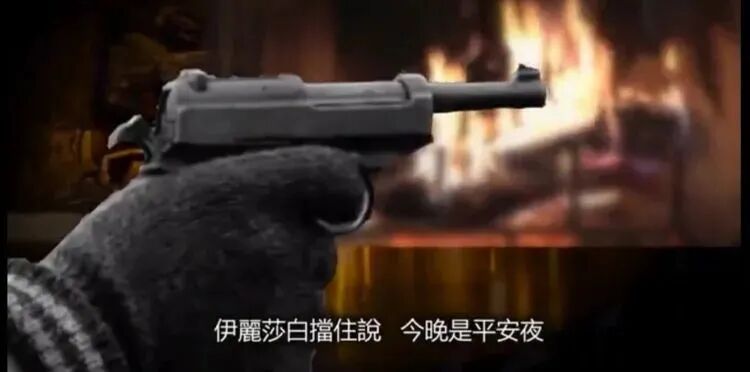 小木屋内的美国大兵紧张起来,连忙掏枪。一名叫拉尔夫•布兰克的士兵已经亮出了手枪,准备射杀进门的德军,但伊丽莎白喝住了他们。她用法语说了同样的话,“今晚是平安夜,不准杀戮,把枪给我。”伊丽莎白从布兰克手上收缴了他的手枪。然后,她安排狭路相逢的敌对士兵坐在桌前,因为房子狭小,美、德士兵不得不紧紧地挤在一起,肢体碰触,气氛仍然紧张。他们彼此提防着,谁也吃不准会发生什么事情,伊丽莎白面带微笑一边和他们说话,一边忙来忙去准备圣诞晚餐。