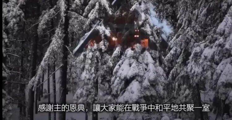 晚餐端上了桌,伊丽莎白开始做饭前祈祷,她含着眼泪祷告说,“感谢主的恩典,让大家能在这场恐怖的战争中和平地共聚一室;在这个圣诞之夜我们承诺不分敌我,友好相处,分享这顿并不丰盛的圣诞晚餐;我们祈祷尽早结束这场可怕的战争,让大家都能平安回到自己的家乡。”