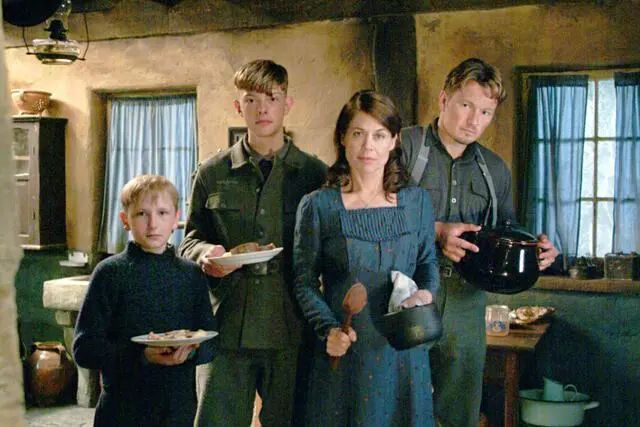我们的故事发生战斗最激烈的时候。在战区德方一侧的许特根森林(HÜRTGEN FOREST)深处,一位名叫伊丽莎白•维肯(ELISABETH VINCKEN)的德国妇女,因在亚琛城内的家和糕饼店被盟军空中轰炸摧毁,为了逃避战乱带着12岁的儿子弗瑞斯,住在林中一个用于狩猎的小木屋里。虽然突出部战役在小木屋不远处的四周展开,枪炮声清晰可辨,但密林中还算安全。