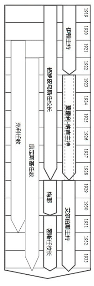 对照任职校长与初步课程主持人员的在校时间,我们可以清楚地看到三位负责人员包括克利与康定斯基,都是由格罗皮乌斯任命教学的。当格罗皮乌斯于1928年离职后,莫霍利-纳吉也立即辞职。